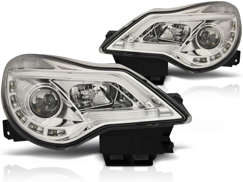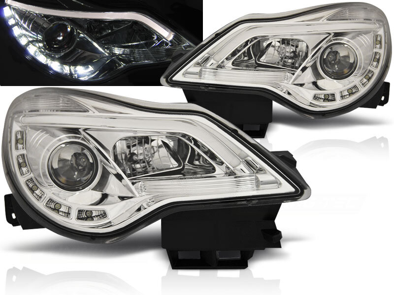 LED TubeLight Scheinwerfer Set mit echtem TFL Opel Corsa D BJ 11-14 Klar Chrom